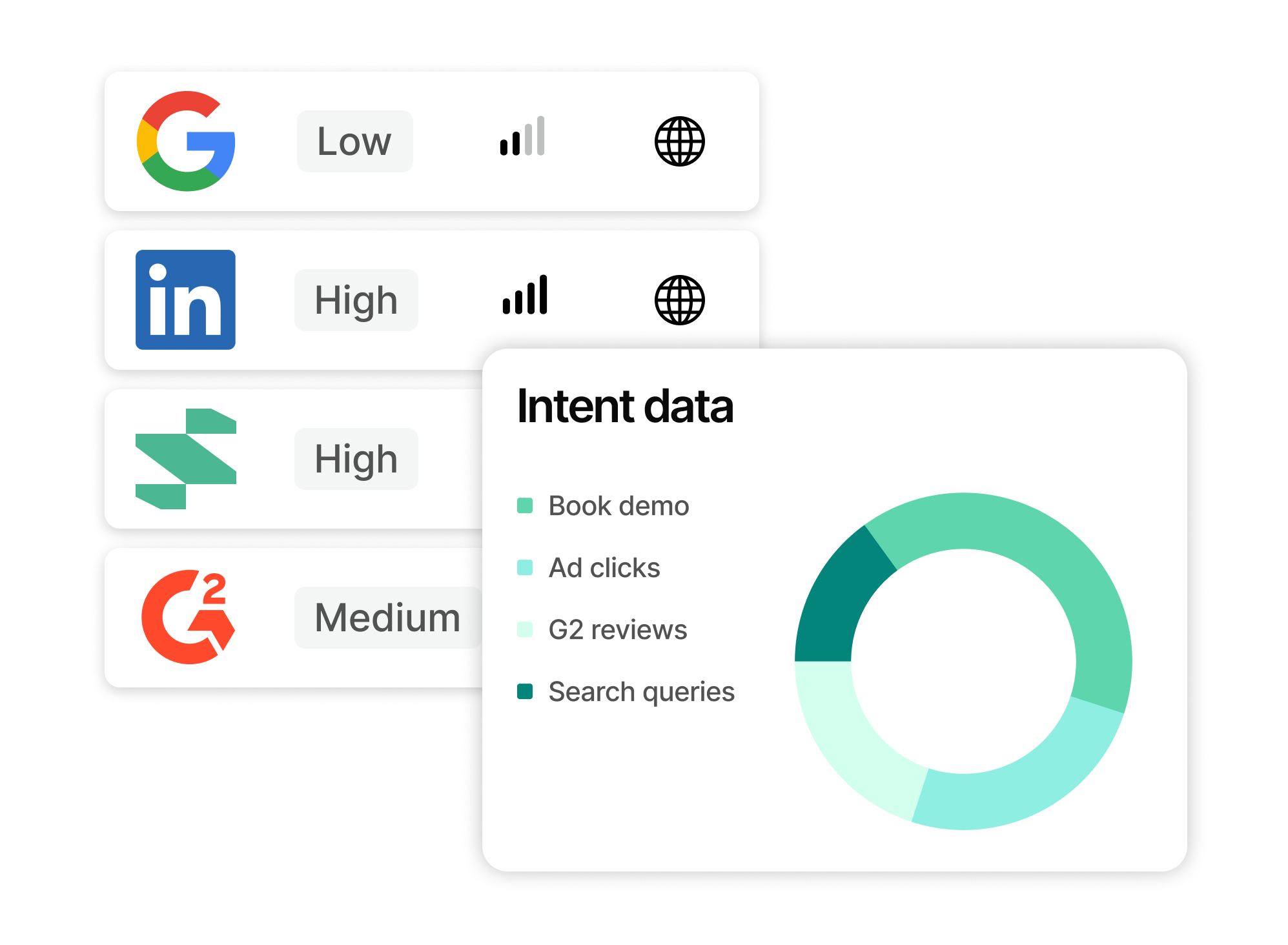 - Third-party sources like G2 intent data