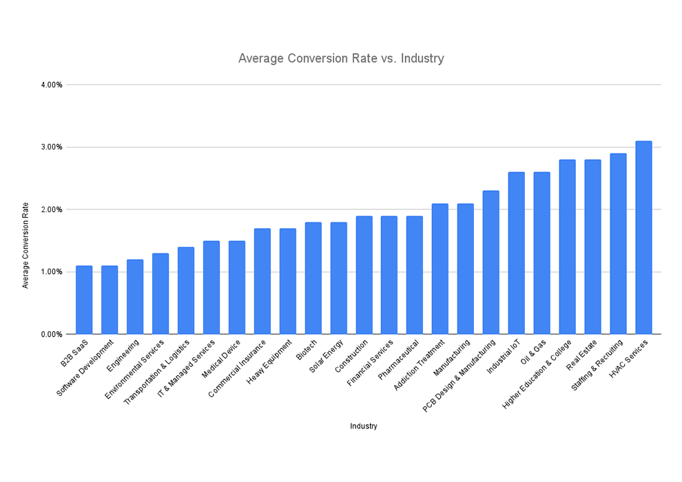 Here’s a chat showing conversion rate benchmarks for different industries.
