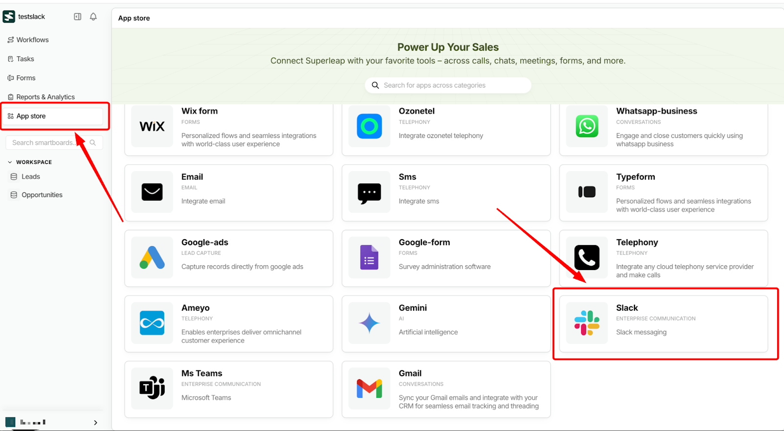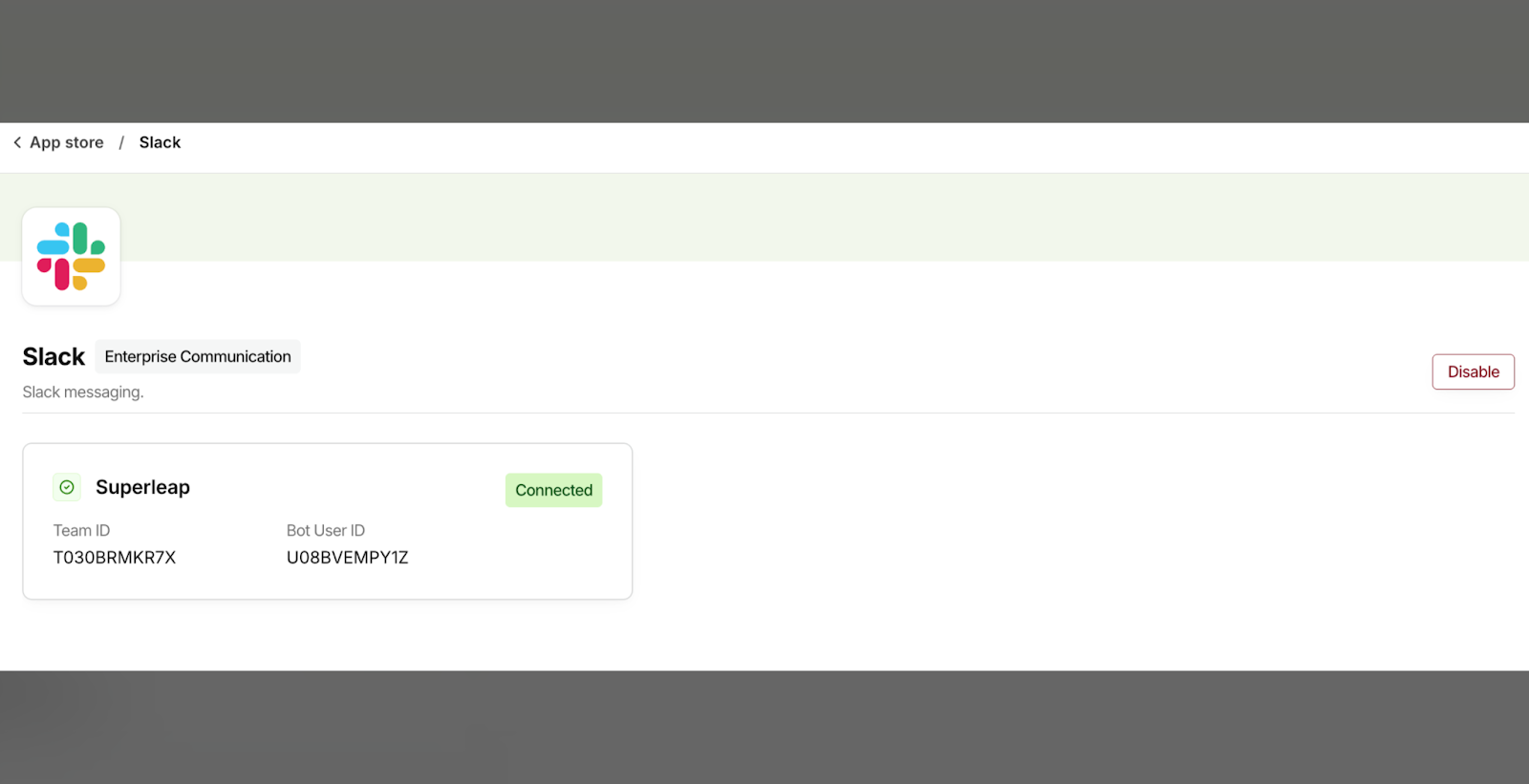Connect Superleap with Slack to receive real-time updates, alerts, and messages directly inside your Slack workspace. Enable faster collaboration, instant visibility, and automated notifications - without leaving Slack.