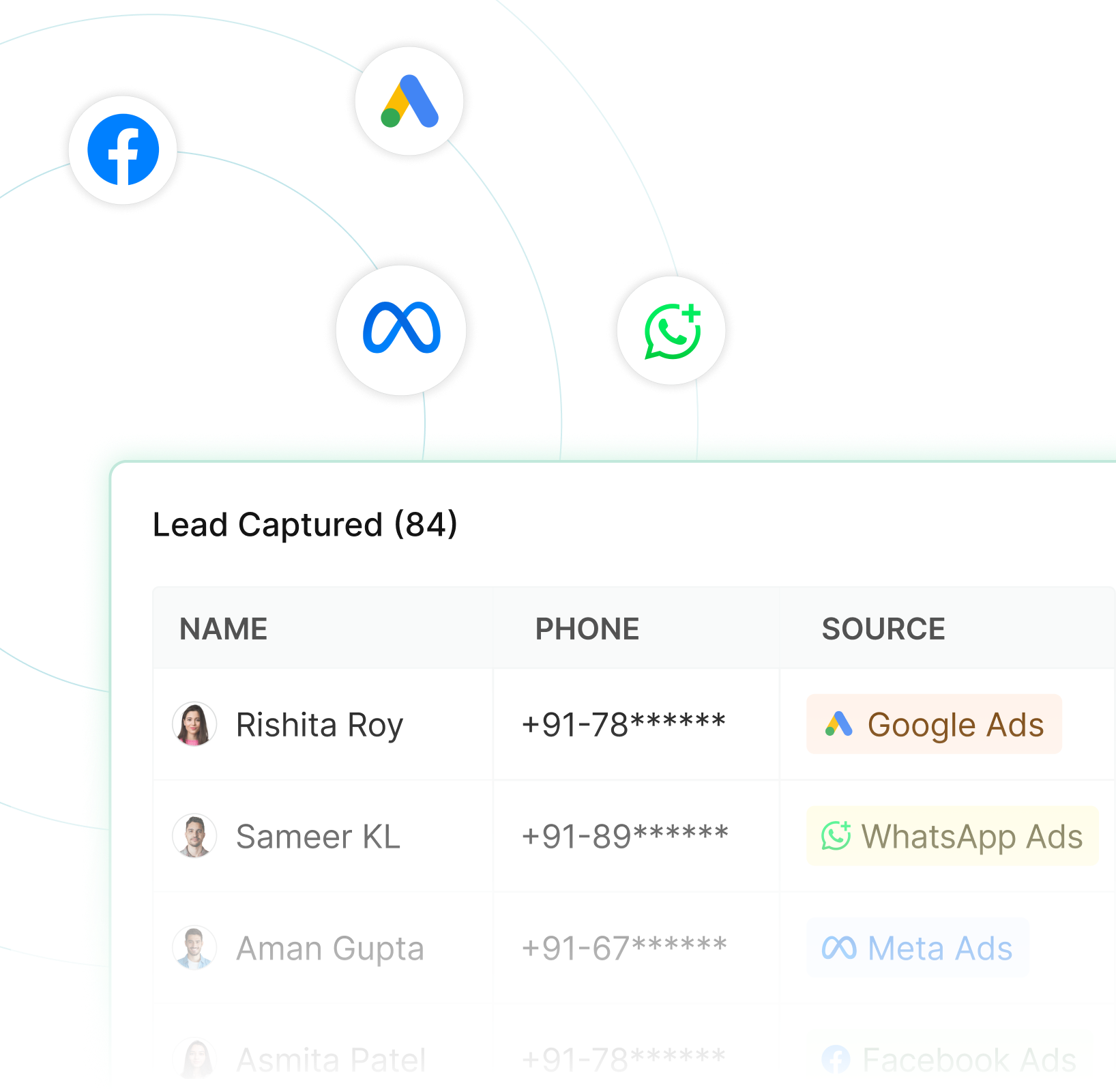 Automatically capture leads from forms, ads, calls, WhatsApp, or APIs.